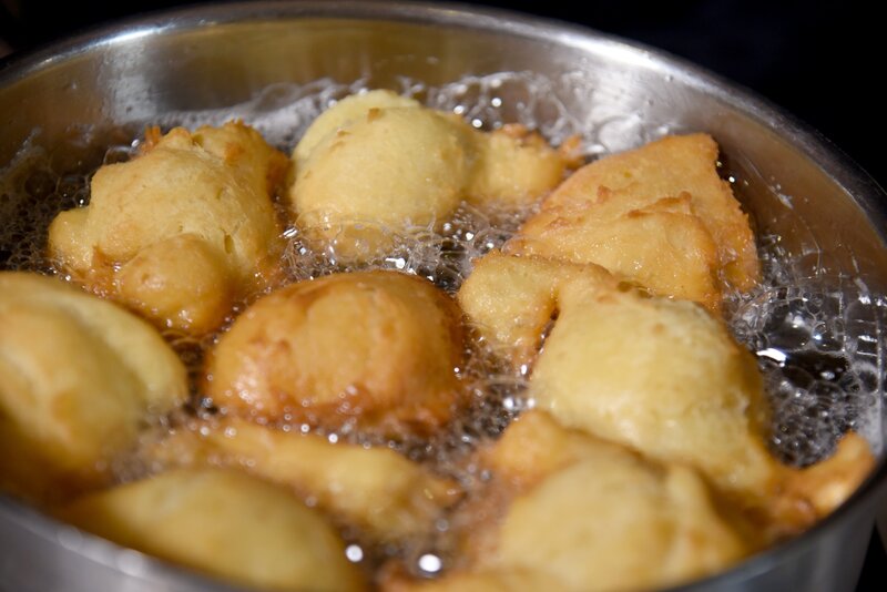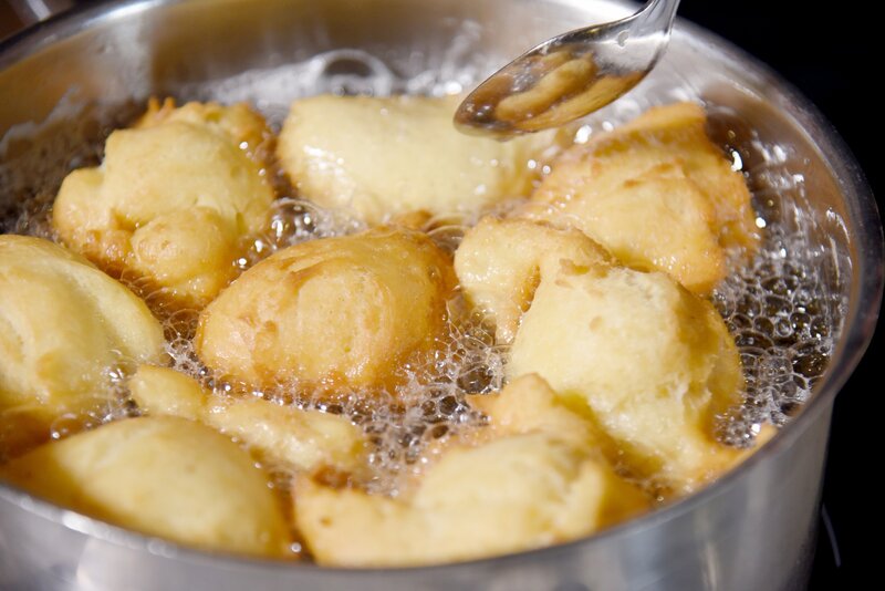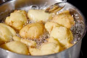 Die gebackenen Mäuse werden in heißem Fett herausgebacken.Bild: © ORF/Produktion West/Gerhard Mader