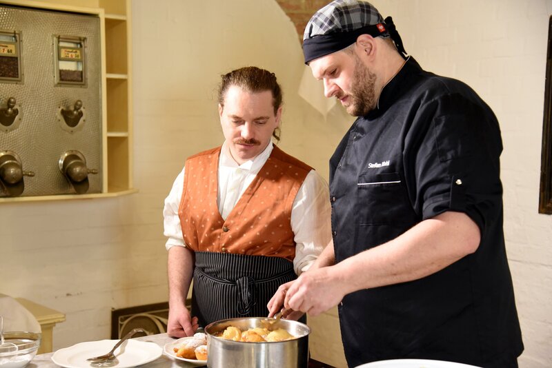 Die Herrschaft (Philipp Walser) wartet gespannt darauf bis die süßen, gebackenen Mäuse aus dem heißen Fett kommen.Bild: © ORF/Produktion West/Gerhard Mader