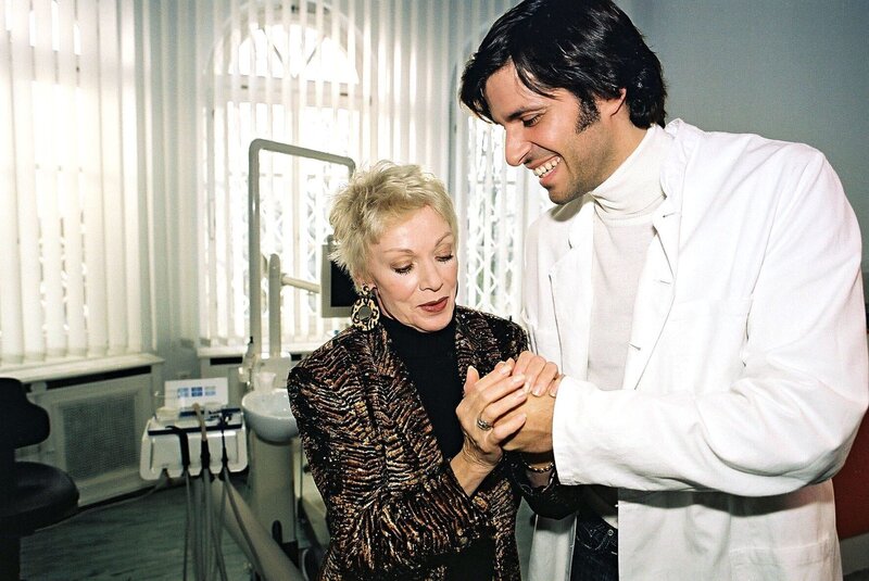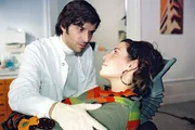 Dr. Odenthal (Pasquale Aleardi, r.) liegen die Frauen zu Füßen. Auch seine Patientin Frau Sommerhof (Anita Kupsch, l.) kommt viel häufiger als nötig in die Zahnarztpraxis ...Bild: © SAT.1 / Gordon Mühle Eigenproduktionsbild frei