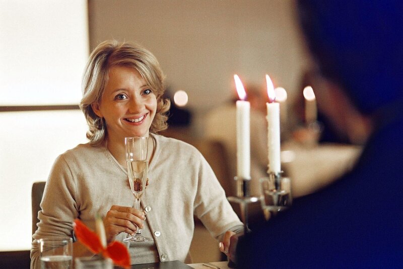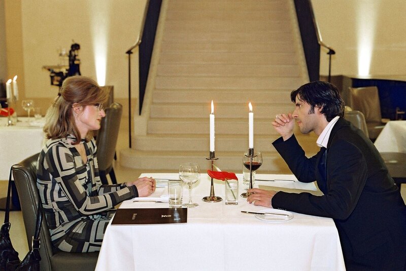 Gudrun (Nina Petri, l.) und Daniel (Pasquale Aleardi, r.) haben ein Rendezvous in einem italienischen Restaurant. Natürlich erliegt auch Gudrun sofort seinem unwiderstehlichen Charme ...Bild: © SAT.1 / Gordon Mühle Eigenproduktionsbild frei