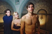 Daniel (Pasquale Aleardi, M.) macht seinen kauzigen Freund Gernot (Jochen Horst, r.) mit Annabelle (Elena Uhlig, l.) bekannt. Doch die beiden kennen sich schon ...Bild: © SAT.1 / Gordon Mühle Eigenproduktionsbild frei