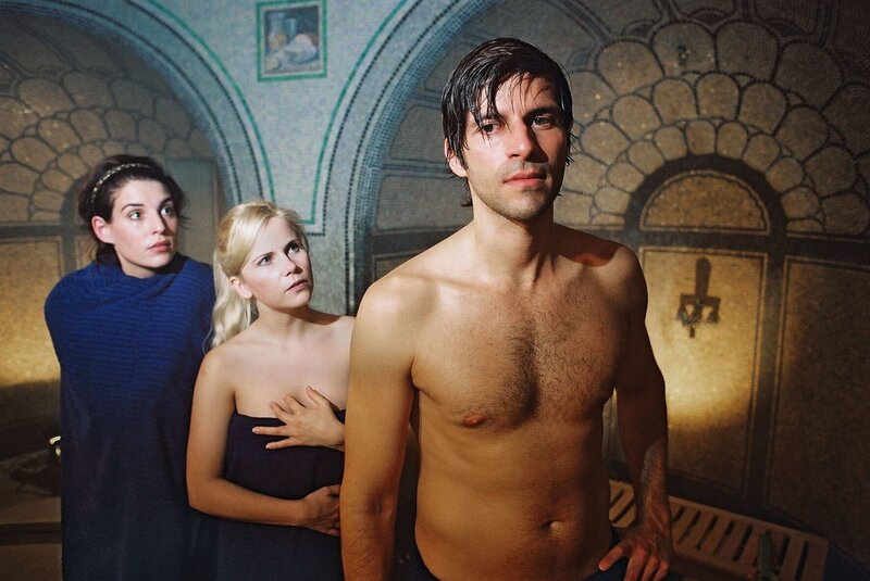 Annabelle (Elena Uhlig, l.) trifft in der Sauna nicht nur ihren Daniel (Pasquale Aleardi, r.), sondern auch dessen "Bekannte" Yvonne (Michaela Schaffrath, M.).Bild: © SAT.1 / Gordon Mühle Eigenproduktionsbild frei