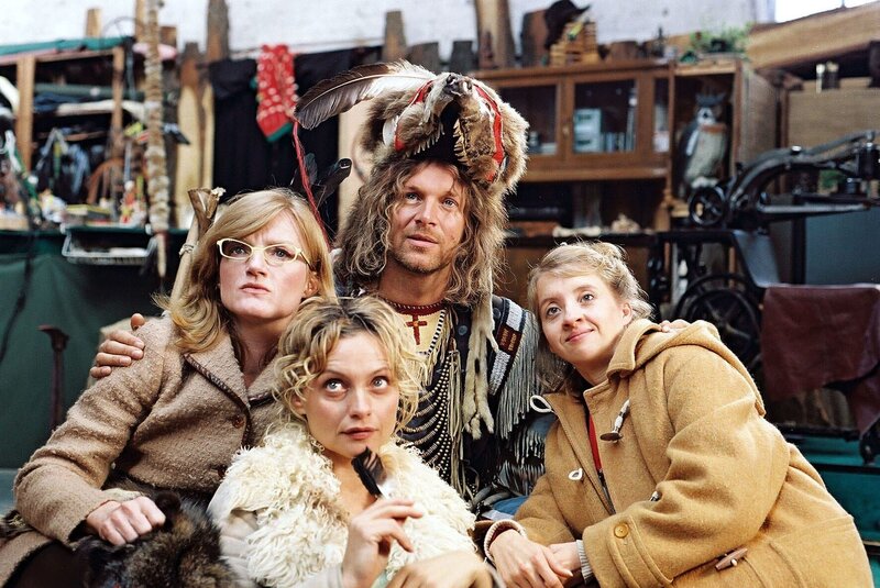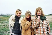 Die drei Freundinnen (v.l.n.r.: Catherine Flemming, Anna Böttcher, Nina Petri) trauen ihren Augen nicht: Ihre Freunde vollführen einen Indianertanz.Bild: © SAT.1 / Gordon Mühle Eigenproduktionsbild frei