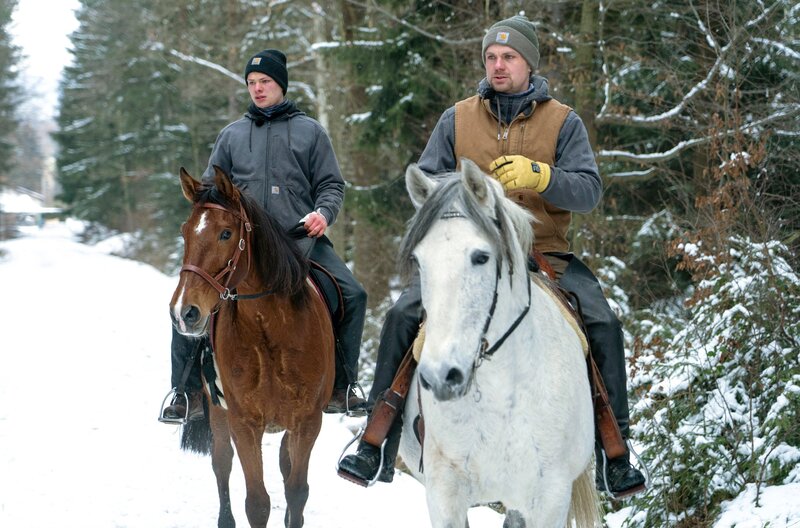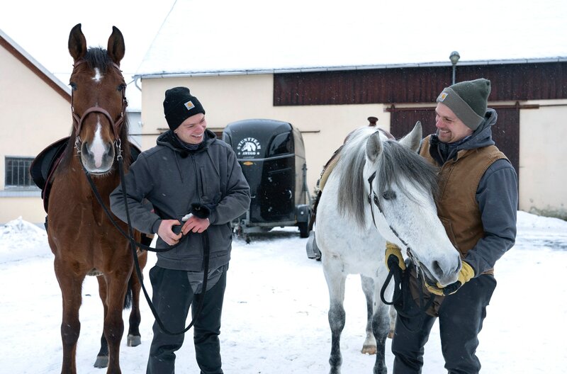 Alexander und Stefan Knappe (v.l.n.r.) haben die Versorgung und das Training der Pferde übernommen.Bild: © MDR/414films