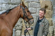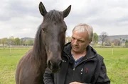 Das Pferd Sandkorn wurde von Mario Kahl trainiert und hilft Alex und Stefan bei ihren Stunts.Bild: © MDR/414films