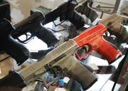 Selbst in knalligen Farben tödlich: Knarre, Wumme, Pistole, Revolver, Colt und Ballermann.Bild: © Michael Freund