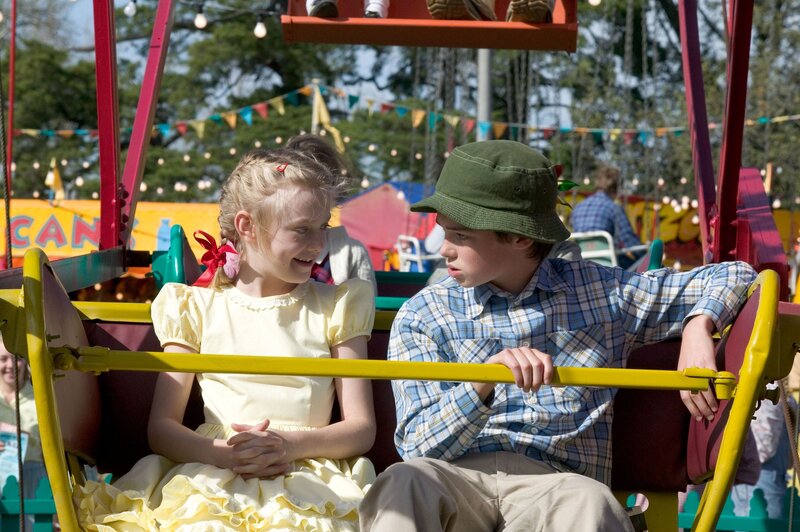 Neben der Landwirtschaftsschau, auf der Wilbur seinen großen Auftritt haben wird, gibt es auch einige Karussells, auf denen sich Fern (Dakota Fanning, l.) mit ihrem Schulfreund Henry (Julian O'Donnell, r.) vergnügt.Bild: © TM & Copyright by Paramount Pictures. All rights reserved.