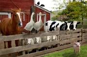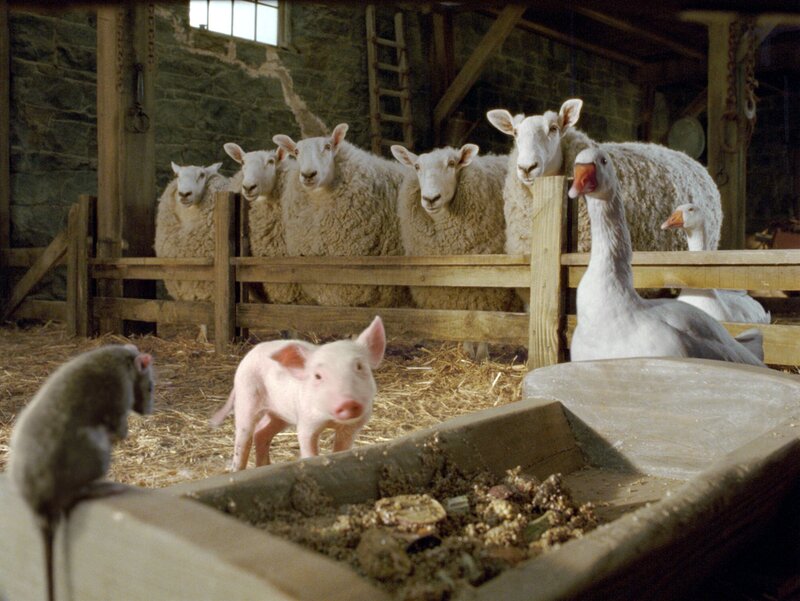Auf der Zuckermann-Farm leben neben der Spinne Charlotte auch Schafe, die Gänse Golly und Gussy und die Ratte Templeton. Nullkommanichts hat sich Wilbur im Kreis seiner neuen Freunde eingelebt.Bild: © Paramount Pictures