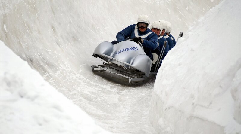 Große Hoffnung: Bobfahrer Gamser (Sebastian Bezzel, Mitte vorne) will gewinnen.Bild: © Constantin Television GmbH