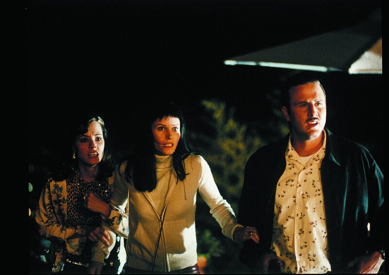 Schon bald erkennt Journalistin Gale Weathers (Courteney Cox, l.), dass ihre Ex-Flamme Deputy Dewey Riley (David Arquette, r.) einen heißen Flirt mit der Schauspielerin Jennifer Jolie (Parker Posey, M.) pflegt, ausgerechnet mit der Schauspielerin, die Gale in allen drei STAB-Filmen verkörpert ...