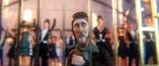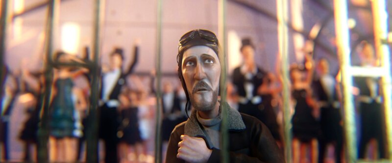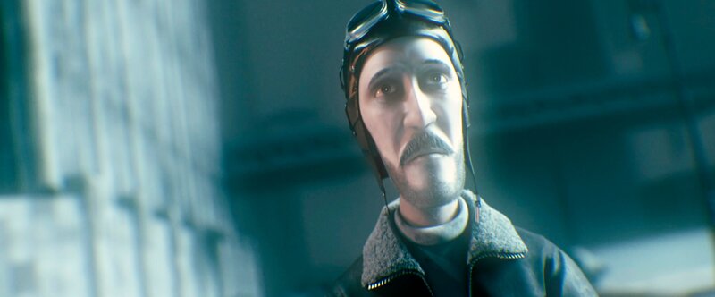 Im utopischen Freizeitpark SEALAND trifft der Mann mit Fliegermütze auf einen Jungen.Bild: © MDR/Greenhouse Production