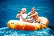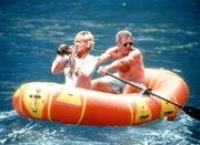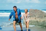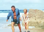 Nach einem Flugzeugabsturz finden sich der Pilot Quinn Harris (Harrison Ford, li.) und die Passagierin Robin Monroe (Anne Heche) auf einer südpazifischen Insel wieder... +++ Die Verwendung des sendungsbezogenen Materials ist nur mit dem Hinweis und Verlinkung auf RTL+ gestattet. +++