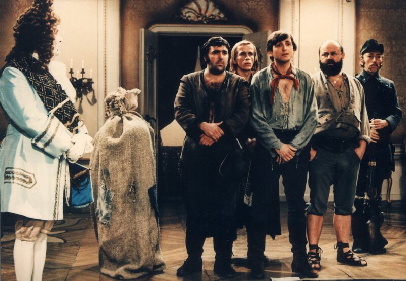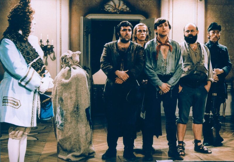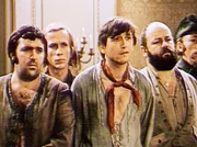 Der gemeine König verweigert am Ende des Krieges den Soldaten ihren Lohn. Wütend über diesen Betrug tut sich einer der Geprellten mit fünf anderen zusammen, die allesamt ungewöhnliche Kräfte besitzen: Da ist zum Beispiel der Starke, der Bäume ausreißen kann, der Fiedler, der alle Menschen mit seiner Musik zum Tanzen bringt, der immer treffsichere Jäger, der schnellste Läufer des Landes und Schiefhütchen, die mit ihrer Mütze Frost zaubern kann.Bild: © MDR/PROGRESS/Goldmann/Pathenheimer
