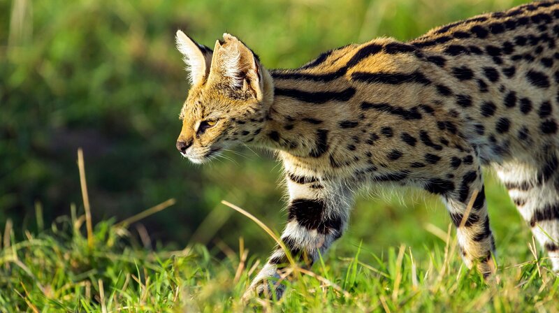 In der Masai Mara, einem Naturschutzgebiet in Kenia, leben Servale in der Savanne. Die mittelgroßen, scheuen Katzen leben im Grasland und ernähren sich überwiegend von kleinen Säugetieren. Das Leben der Raubtiere ist nicht leicht, da sie viele Feinde haben und ihr Nahrungsangebot jahreszeitlich schwankend ist. In einigen afrikanischen Nationalparks wie der Serengeti existiert noch heute ein Ökosystem mit all seinen natürlichen Bewohnern - von den ganz Großen bis zu den ganz Kleinen. Kaum größer als eine heimische Hauskatze, gehört der Serval zu den erfolgreichsten Raubtieren der afrikanischen Savannen. Sein Fell ähnelt in Farbe und Muster dem von Geparden. Mit seinem kleinen Kopf, den großen, runden Ohren und ungewöhnlich langen Beinen wirkt Afrikas eher unbekannte Katze wie eine grazile Miniaturausgabe der Sprintweltmeister. Das Dasein des Servals ist bestimmt von einem immerwährenden Jagen und gejagt werden. Denn er führt während seiner Suche nach der nächsten Beute ein gefährliches Leben im Schatten der großen Raubtiere. Die großen Ohren der schlanken Raubkatze sind ihr wichtigstes Werkzeug: Sie helfen beim Aufspüren von Beute und Feind zugleich. Servale sind Einzelgänger und leben unauffällig. Sie verharren geräuschlos im hohen Gras der Savanne, um mithilfe ihres exzellenten Gehörs die Beute zu lokalisieren und sich dann mit einem langen Satz darauf zu stürzen. Doch ständig begleitet von aufgeregten Vögeln, kann er sich bei der Jagd auf Buschhasen, Gazellenkitze und Frankoline kaum unbemerkt bewegen. Hat die hungrige Katze keinen Erfolg bei größeren Tieren, muss sie auf Nager und Insekten ausweichen. In Naturfilmen spielen unbekannte Tiere wie der Serval meist nur eine Nebenrolle. Diese Dokumentation rückt die Savannenbewohner am unteren Ende der Nahrungskette in den Fokus. Afrikaspezialist Reinhard Radke setzt die Servale mit neuester Kameratechnik und in spektakulären Zeitlupen in Szene.