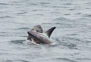 Monterey, CA - Orca greift einen Siebenkiemerhai an (Slater Moore)Bild: © National Geographic Partners, LLC / Slater Moore