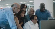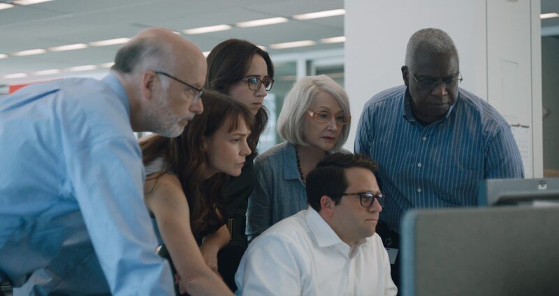 L-R: Matt Purdy (Frank Wood), Megan Twohey (Carey Mulligan), Jodi Kantor (Zoe Kazan), Rebecca Corbett (Patricia Clarkson), Rory Tolan (Davram Stiefler) and Dean Baquet (Andre Braugher) in She Said, directed by Maria Schrader.Bild: © Universal Pictures