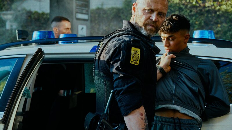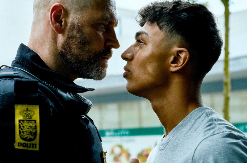 Der Streifenpolizist Andersen (Jacob Hauberg Lohmann) möchte den Jugendlichen Amos Al-Shami (Tarek Zayat, rechts) brechen.Bild: © Alba Films