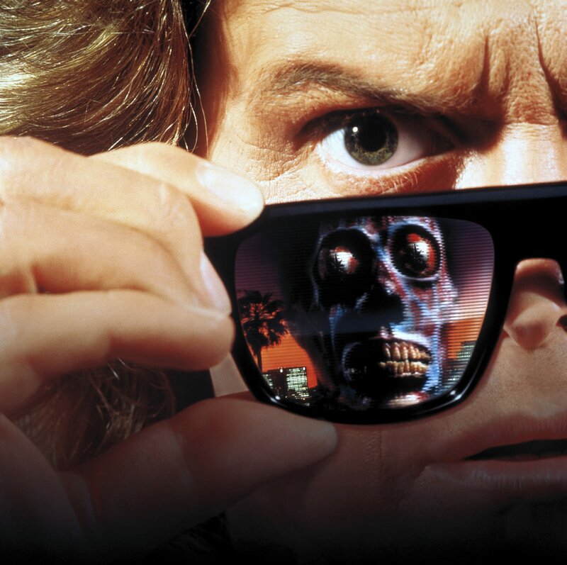 Der obdachlose Ölarbeiter John Nada zieht als Tagelöhner durch die USA und findet in Los Angeles einen Aushilfsjob auf einer Baustelle. Dort lernt er Frank kennen, der ihn zu einer Obdachlosensiedlung begleitet, wo der wohnungslose Nada unterkommen kann. Die Bewohner der Baracken verbringen ihre freie Zeit vor dem Fernseher, dessen Programm immer wieder von einem Sprecher eines Piratensenders unterbrochen wird. Dieser berichtet von einer fremden Macht, welche die Menschheit zu unterwandern versucht, und ruft zum Widerstand auf. Gleichzeitig beobachtet Nada seltsame Vorgänge in einem nahe gelegenen Gotteshaus.Er beschließt, den Dingen auf den Grund zu gehen, und findet in der Kirche einen Karton voller Sonnenbrillen. Als er eine der Brillen aufsetzt und durch die Straßen LAs schlendert, erkennt Nada die grausame Wahrheit: Hinter Werbeplakaten, Zeitungen und Magazinen verstecken sich unterschwellige Konsum- und Unterwerfungsanweisungen von Außerirdischen, mit denen sie die Menschen gefügig machen. Die wahren Profiteure des Kapitalismus sind nicht die unterworfenen Menschen, sondern die mächtigen und reichen Aliens. Diese leben - getarnt als Geschäftsleute, Polizisten und Politiker - unter den Menschen; ihre totenschädelartigen Gesichter lassen sich nur mit den von den Widerständlern hergestellten Brillen erkennen.Schockiert von dieser schrecklichen Wahrheit beschließt Nada, die Menschheit aus ihrer Verblendung zu wecken und die Unterwanderung durch die Aliens zu stoppen. John Carpenter übt mit "Sie leben!" nicht nur Kritik an der kapitalistischen Konsumgesellschaft, sondern bringt auch seine ablehnende Haltung gegenüber der Politik des damaligen US-Präsidenten Ronald Reagan zum Ausdruck. Das damals als trashige Science-Fiction-Action abgetane Werk des großen Regisseurs genießt heute Kultstatus.
