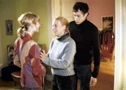 Mala (Floriane Daniel, M.) ist überzeugt, dass der Transvestit Jean vor ihr steht, dabei handelt es sich um Carlos (Marc Hosemann, r.) Ex-Freundin Jeanette (Nadeshda Brennicke, l.).Bild: © Sat.1 emotions