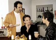 Carlo (Marc Hosemann, r.) ist gerade von seiner Freundin vor die Tür gesetzt worden. Bei Erik (Marco Rima, M.) und Selim (Hilmi Sözer, l.) sucht er vergeblich Unterschlupf ..._Titel: Sind denn alle netten Männer schwulBild: © Sat.1 emotions