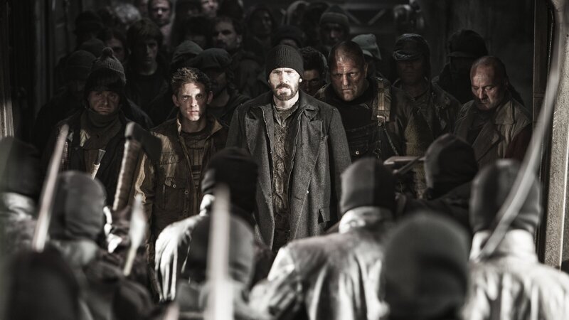 Als eine vom Menschen ausgelöste globale Eiszeit fast das komplette Leben auf der Erde auslöscht, ist ein überlanger Zug, genannt die Arche, die letzte Hoffnung der Erdbewohner. Doch auf der Arche herrscht ein striktes Zweiklassensystem. Die unteren Schichten werden von der Oberschicht unterdrückt und misshandelt. Schon oft gab es Versuche des Aufbegehrens, die immer wieder gescheitert sind. Davon lassen sich Curtis (Chris Evans, M.) und Edgar (Jamie Bell, 2.v.l.) aber nicht aufhalten ...Bild: © MFA+ FILM DISTRIBUTION e.K.
