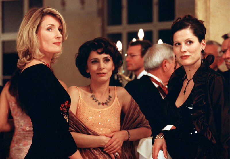 Hanna (Maria Furtwängler, li.) lernt Linda (Ute Willing, Mitte) und Barbara (Heidrun Gärtner), die eifersüchtigen Ehefrauen von Maximilian und Konrad, kennen.Bild: © ARD Degeto / Barbara Bauriedl