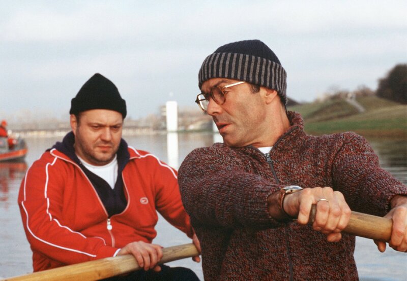 Reden und rudern: Auf dem Wasser erzählen Maximilian (Jan-Gregor Kremp, li.) und Konrad (Hannes Jaenicke) sich ihre privaten Probleme.Bild: © ARD Degeto/Barbara Bauriedl