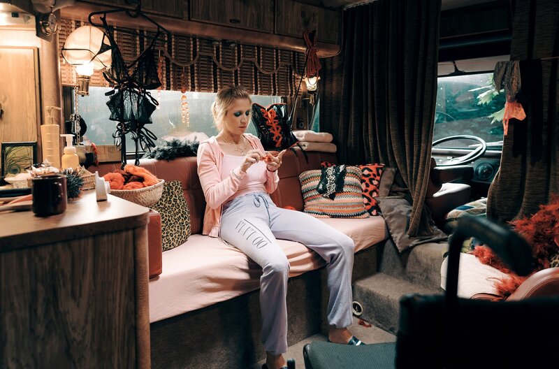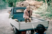 Als Flake, Kim und Philipp mitten auf der Fahrt bei strömendem Regen mit ihrem Mopedauto liegen bleiben, finden sie bei Eva (Annika Ernst) Unterschlupf.Bild: © SWR/Hugo Lenhardt/Giganten Film