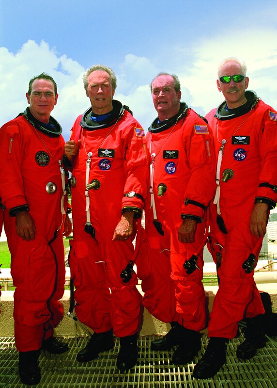 40 Jahre nach ihrem letzten Weltraumflug wagen sich die vier Astronauten Frank (Clint Eastwood, 2.v.l.), Hawk (Tommy Lee Jones, 2.v.r.), Jerry (Donald Sutherland, r.) und Tank (James Garner, l.) noch einmal in den Weltall. Ihre Aufgabe: Die vier Männer müssen einen russischen Satelliten reparieren.Bild: © RTL Zwei