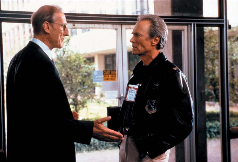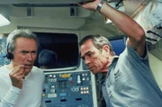 Frank Corvin (Clint Eastwood, re.) schafft es, dem NASA-Bürokraten Bob Gerson (James Cromwell) das Versprechen abzuringen, dass das "Team Daedalus" reaktiviert wird und ins All fliegt, um den Satelliten vor Ort in der Umlaufbahn zu reparieren.Bild: © TVN/Universal