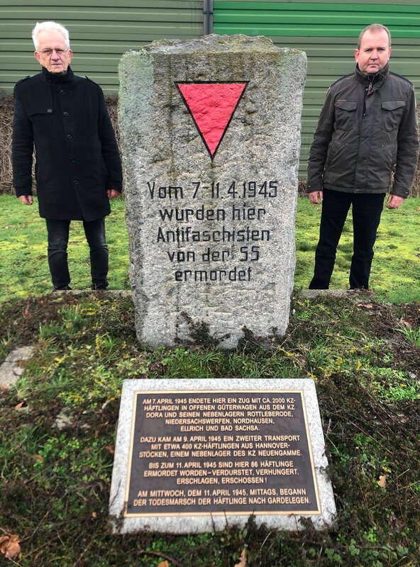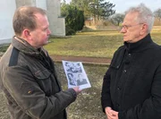 Dr. Wolfgang Kauffmann und Torsten Haarseim setzen sich in Gardelegen für das Gedenken an die Opfer der Todesmärsche von 1945 ein.Bild: © MDR/Jutta-Valeska Hinz