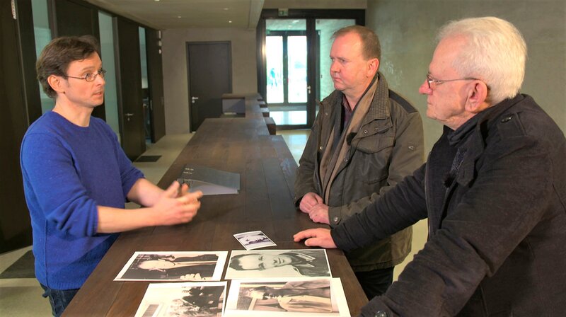 Gedenkstättenleiter Andreas Froese im Gespräch mit Geschichtsforscher Torsten Haarseim und Dr. Wolfgang Kauffmann, dem Neffen von Gerhard Thiele.Bild: © MDR/Jutta-Valeska Hinz