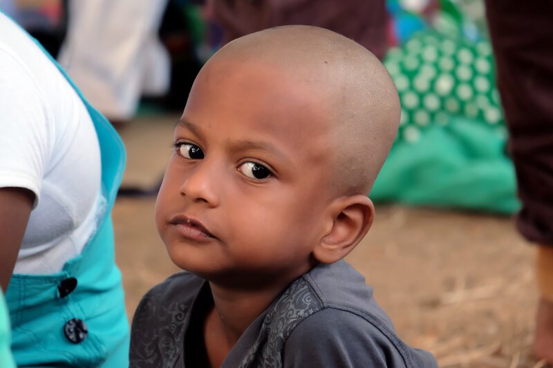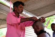 Hindu-Pilger bei ritueller Kopfrasur.Bild: © 3sat