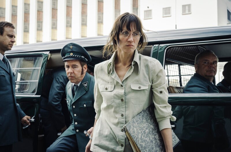 Gudrun Ensslin (Lilith Stangenberg) kurz vor der Ankunft in der JVA Stuttgart Stammheim.Bild: © ZDF und SWR/Hendrik Heiden