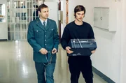 Vollzugsbeamten Horst Bubeck (Moritz Führmann), links, führt Andreas Baader (Henning Flüsloh), rechts, in seine Zelle.Bild: © SWR/Hendrik Heiden