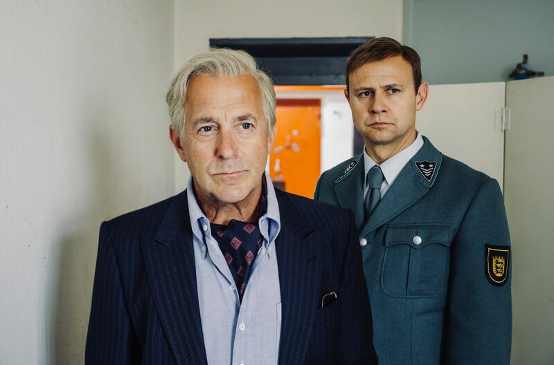 Alfred Klaus (Heino Ferch), links, mit dem Vollzugsbeamten Horst Bubeck (Moritz Führmann)Bild: © SWR/Hendrik Heiden