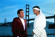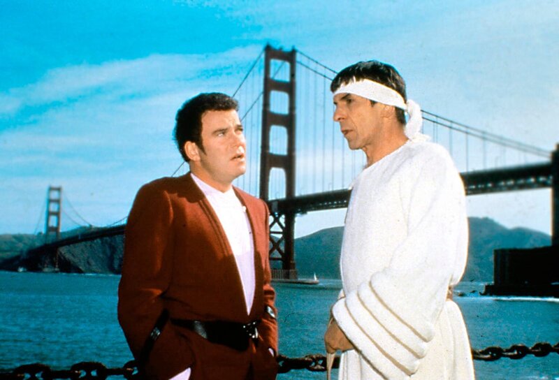 Admiral Kirk (William Shatner, l.) und Mr. Spock (Leonard Nimoy, r.) haben sich ins 20. Jahrhundert nach San Francisco zurückversetzen lassen, um Buckelwale zu suchen. Eine Sonde, die die Erde existenziell bedroht, reagiert nur auf die Gesänge dieser Wale. Ein Wettlauf mit der Zeit beginnt ...Bild: © ATV II