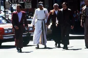 Kirk (William Shatner, l.), Spock (Leonard Nimoy, M.), Scotty (James Doohan, 2.v.r.) und Chekov (Walter Koenig, r.) irren durch das San Francisco von 1986.Bild: © Paramount Pictures