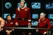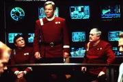 Ehrengäste auf dem Jungfernflug der "Enterprise B": Chekov (Walter Koenig, r.), Kirk (William Shatner, M.) und Scotty (James Doohan, l.) ...Bild: © TM & PARAMOUNT PICTURES CORPORATION