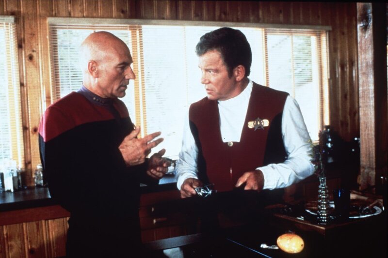 Captain Jean-Luc Picard (Patrick Stewart, l.) trifft Captain James T. Kirk (William Shatner, r.) im "Nexus", einem Ort, an dem alle Wünsche in Erfüllung gehen. Doch der Preis dafür ist hoch und beide Kapitäne versuchen, durch einen Zeitsprung eine kosmische Katastrophe zu verhindern ...Bild: © ATV II