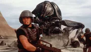 Mit seinen Filmen ('Robocop', 'Total Recall - Die totale Erinnerung') hat Regisseur Paul Verhoeven Maßstäbe auf dem Gebiet der Science-Fiction gesetzt. Bei "Starship Troopers" hat sich der niederländische Starregisseur erneut mit dem Robocop-Team zusammengetan, um Robert A. Heinleins 1959 erschienenen Kultroman "Sternenkrieger" auf die Leinwand zu bringen. Für die bedrohliche und Ekel erregende Darstellung der "Killer-Käfer" holte sich Verhoeven keinen geringeren als den Effektzauberer und Oscar-Preisträger Phil Tippett mit ins Team. Tippett designte und baute schon Aliens für die "Rückkehr der Jedi-Ritter" und für 'Das Imperium schlägt zurück'. Als bisheriger Höhepunkt seines Schaffens gilt 'Jurassic Park', für den Tippett den beeindruckenden Tyrannosaurus Rex und die Furcht erregenden Velociraptoren zum Leben erweckte. 'Da die ausgefeilten technischen (Computer-)Effekte des Oscar-Preisträgers Phil Tippett ('Jurassic Park') bereits die Hälfte des Budgets verschlangen, wurden die wahnwitzig idealistischen Starship Trooper größtenteils mit unverbrauchten Newcomern aus der Aaron-Spelling-TV-Talentschmiede besetzt - für Verhoeven ein Freibrief, eine Vielzahl von ihnen in einem drastischen Anti-Kriegs-Statement als Kanonenfutter zu verheizen', berichtet Blickpunkt: Film.