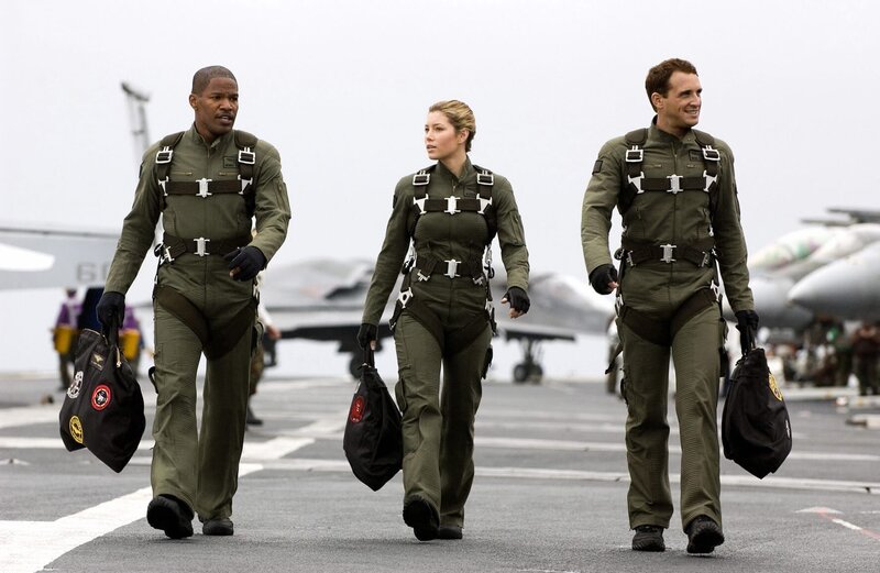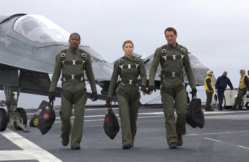 Die Navy-Piloten (v.l.n.r.) Ben Gannon (Josh Lucas), Henry Purcell (Jamie Foxx) und Kara Wade (Jessica Biel) sind die besten der Besten und als Team unschlagbar. Eines Tages bekommen sie ungewöhnliche Verstärkung: Von einem hochmodernen Tarnkappenbomber, der nicht von einem Piloten, sondern von einem Computer mit künstlicher Intelligenz gesteuert wird ...Bild: © Columbia Pictures Industries, Inc.