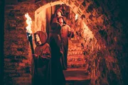 Reinhard Posch (Harald Krassnitzer, li.) und seine Frau (Elisabeth Krön) erklären die mittelalterliche Prozedur der Apfelbrennerei.