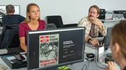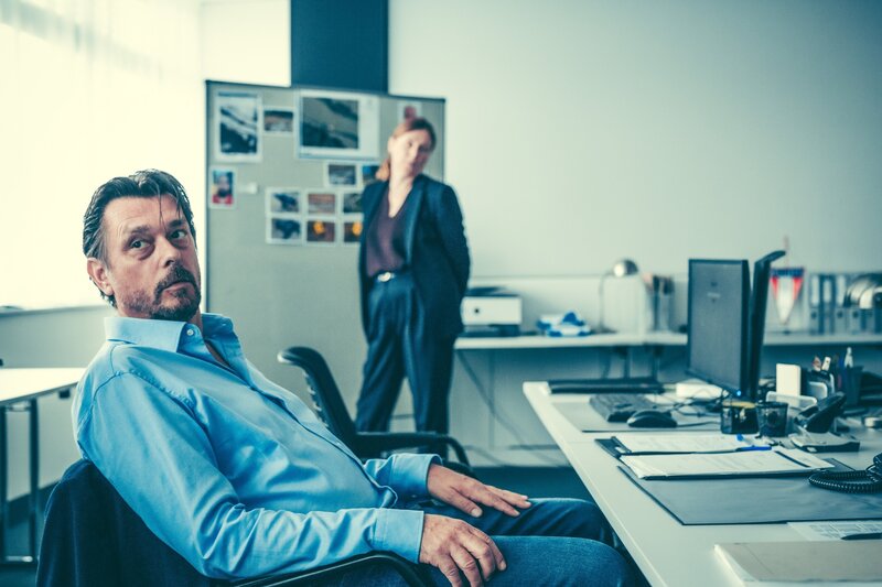 Sascha Bergmann (Hary Prinz, li.) und seine Chefin Nicole Sturm (Bettina Mittendorfer) diskutieren einen alten Todesfall.