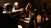 Robert Käfer (Werner Wultsch) und Franz Heindl (Edi Jäger, re.) werden bei einem erneuten Brandanschlag schwer verletzt.