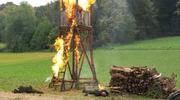 Der Apfelbrenner Franz Heindl (Edi Jäger) wird bei einem Brandanschlag schwer verletzt.