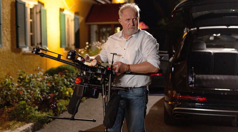 Apfelbrenner Reinhard Posch (Harald Krassnitzer) mit der Tatwaffe?