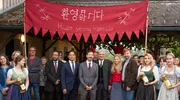 Expansion des Edelbrands nach Südkorea: Ill-Young Kim (Ill-Young Kim, 6. v. re.), Ursula Laubner (Hilde Dalik, 4. v. re.) und ihr Mann Johannes (Markus Hamele, 3. v. re.) feiern.
