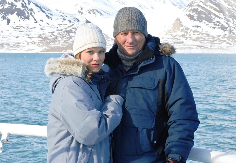 Der Meeresbiologe Martin Schell begegnet während einer arktischen Forschungsexpedition seiner großen Liebe Nina. Viele Jahre war die Journalistin aus seinem Leben verschwunden, nachdem er sie betrogen hatte. Nun muss ausgerechnet Nina für ein wissenschaftliches Magazin über Martins Forschungsreise berichten. Durch das Wiedersehen brechen alte Wunden auf. Nina will Martin und seiner jungen Assistentin Doreen, mit der er liiert ist, möglichst aus dem Weg gehen. Auf dem beengten Forschungsschiff im Polareis ist das jedoch unmöglich. Michael Fitz und Birge Schade spielen die Hauptrollen in diesem prachtvoll fotografierten Liebesfilm. Außerdem sind Franziska Schlattner und Horst Sachtleben zu sehen. Martin Schell (Michael Fitz), Professor für Meeresbiologie, und seine Assistentin Doreen (Franziska Schlattner) sind seit einem halben Jahr ein glückliches Paar. Noch glücklicher wäre Doreen freilich, wenn Martin sie endlich heiraten und eine gemeinsame Wohnung mit ihr beziehen würde. Doch dem eingefleischten Single ist nicht wohl bei dem Gedanken an eine feste Bindung. Außerdem denkt Martin nur noch an seine große Polarexpedition, für die er überraschend die Genehmigung erhalten hat. Doreen begleitet ihn in der Hoffnung, dass während der mehrwöchigen Reise in die Arktis endlich das Eis bricht. Danach sieht es aber nicht aus, denn an Bord des Forschungsschiffes trifft Martin überraschend seine große Ex-Liebe Nina (Birge Schade) wieder, die als Journalistin für ein Wissenschaftsmagazin über die Expedition berichtet. Seit er vor 15 Jahren die Trennung durch einen Seitensprung verschuldete, haben die beiden sich nicht mehr gesehen. Martin weiß bis heute nicht, dass Nina seinerzeit schwanger war. Zunächst hat es den Anschein, als ob die beiden sich nichts mehr zu sagen hätten. Doch Martins Vater Kurt (Horst Sachtleben), der sich als blinder Passagier an Bord schmuggelte, setzt alles daran, dass sein Sohn das Glück nicht noch einmal mit Füßen tritt. In diesem aufwendig inszenierten Liebesfilm entdecken Michael Fitz als Polarforscher und Birge Schade in der Rolle einer Journalistin und alleinerziehenden Mutter ihre große Liebe im ewigen Eis. Weiterhin zu sehen sind Franziska Schlattner und Vanessa Krüger, Schauspielveteran Horst Sachtleben - populär als Bischof Rossbauer in der erfolgreichen Serie "Um Himmels Willen" - setzt als blinder Passagier komische Akzente. Unterhaltungsspezialist Sigi Rothemund und sein bewährter Kameramann Dragan Rogulj, bekannt durch die Venedig-Krimis nach Donna Leon, filmten unter anderem vor der traumhaften Eismeer-Kulisse bei Spitzbergen. Der Meeresbiologe Martin Schell begegnet während einer arktischen Forschungsexpedition seiner einstigen großen Liebe Nina. Viele Jahre war die Journalistin aus seinem Leben verschwunden, nachdem er sie betrogen hatte. Nun muss ausgerechnet Nina für ein wissenschaftliches Magazin über Martins Forschungsreise berichten. Nina will Martin und seiner jungen Assistentin Doreen, mit der er liiert ist, möglichst aus dem Weg gehen. Auf dem beengten Forschungsschiff im Polareis ist das jedoch unmöglich. Martin Schell, Professor für Meeresbiologie, und seine Assistentin Doreen sind seit einem halben Jahr ein glückliches Paar.