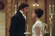 England, Ende des 18. Jahrhunderts. Mrs. Bennet verfolgt für ihre fünf Töchter nur ein Ziel: alle standesgemäß zu verheiraten. Jedoch fallen der scharf- wie eigensinnigen Elizabeth gute Gründe ein, sich ihrer Mutter zu widersetzen. Als die wohlhabenden Junggesellen Mr. Darcy und Mr. Bingley das nahegelegene Herrenhaus beziehen, sieht Mrs. Bennet die große Chance für sich und ihre Töchter gekommen. - Mr. Darcy (Matthew Macfadyen) und Elizabeth Bennet (Keira Knightley). (Lizenzende: 30.09.2028)
